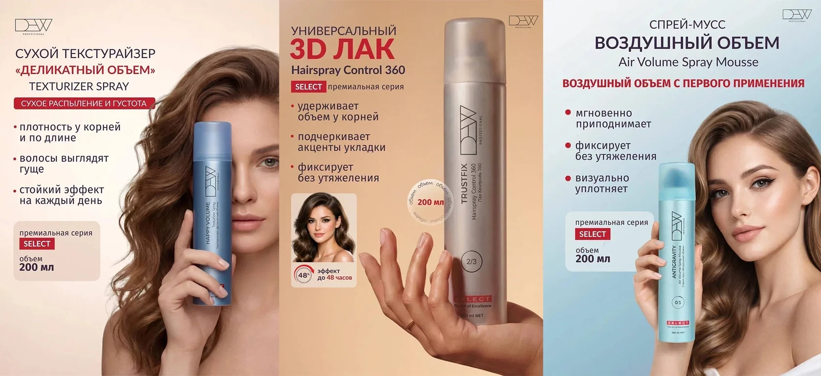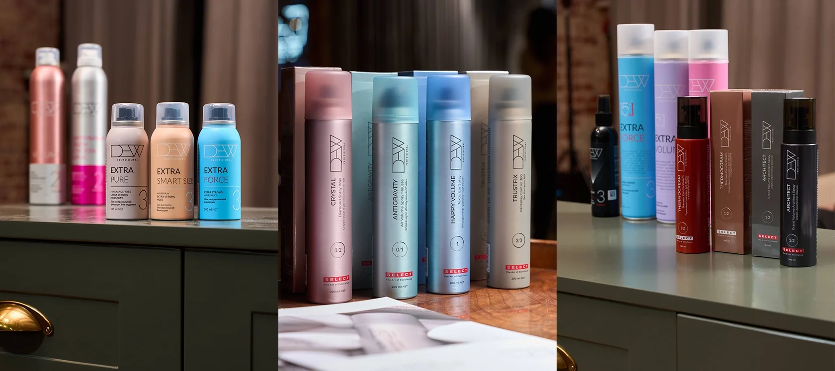 Первый аэрозольный бренд на российском рынке, представляющий собой инновационную линейку продуктов для стайлинга волос, включающую финишные лаки, спреи и муссы